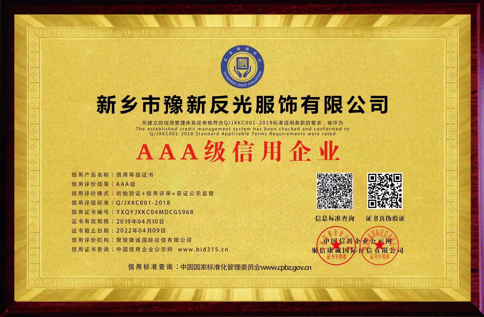 A級(jí)信用企業(yè)